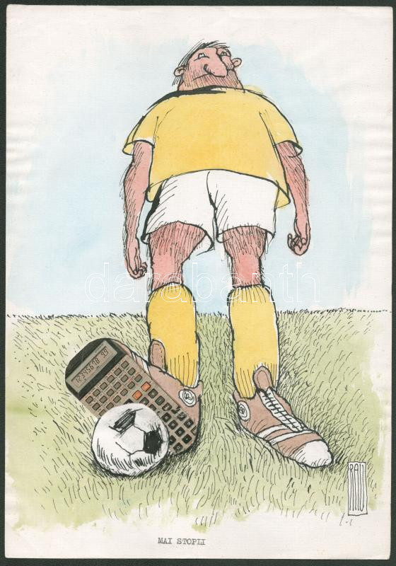 Rau Tibor (1934-2009): Mai stopli (futball témájú karikatúra). Tus, ak... https://www.darabanth.com/hu/513-Festmeny-grafika-plakat-ex-libris-arveres/514.0/Festmenyek-es-grafikak/Festmenyek-es-grafikak~4/Rau-Tibor-1934-2009-Mai-stopli-futball-temaju-karikatura-Tus-akvarell-kollazs-papir-~II3422321