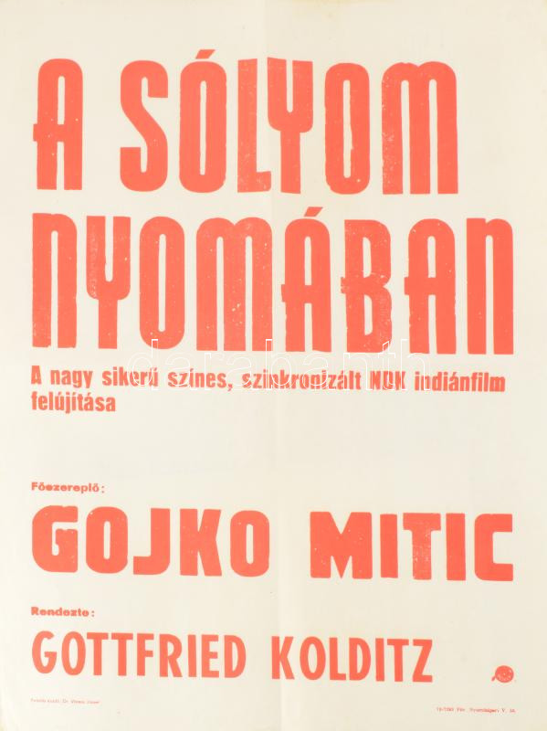 1978 A Sólyom nyomában, Gojko Mitic, filmplakát, papír, Főv. Nyomdaipa... https://www.darabanth.com/hu/513-Festmeny-grafika-plakat-ex-libris-arveres/514.0/Festmenyek-es-grafikak/Plakat~3/1978-A-Solyom-nyomaban-Gojko-Mitic-filmplakat-papir-Fov-Nyomdaipari-V-hajtasnyommal-59-~II3465466
