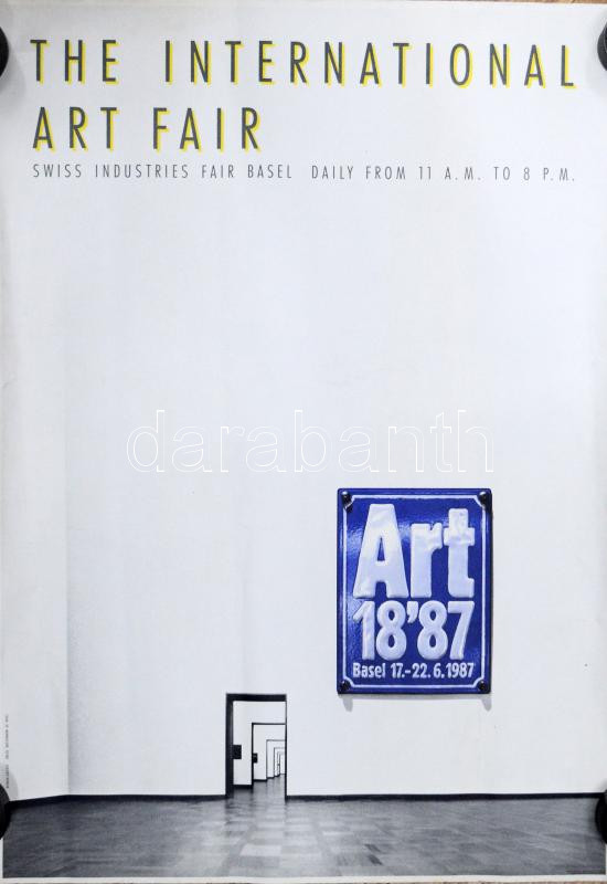 1987 Art Basel, kiállítási plakát. Feltekerve, gyűrődésekkel. 59x42 cm https://www.darabanth.com/hu/513-Festmeny-grafika-plakat-ex-libris-arveres/514.0/Festmenyek-es-grafikak/Plakat~3/1987-Art-Basel-kiallitasi-plakat-Feltekerve-gyurodesekkel-59x42-cm~II3400267