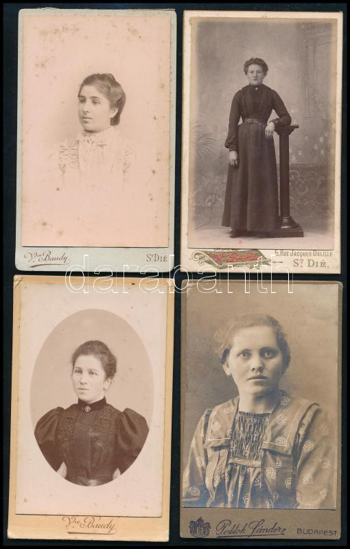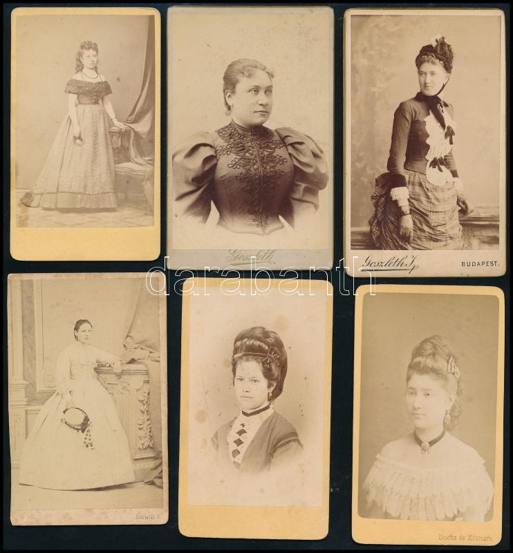 10 db hölgyeket ábrázoló vizitkártya, különféle magyar és külföldi műtermekből (közte Goszleth István, Bp.; Doctor és Kozmata, Pest; Schmidt Vilmos, Székesfehérvár; stb.), vegyes állapotban