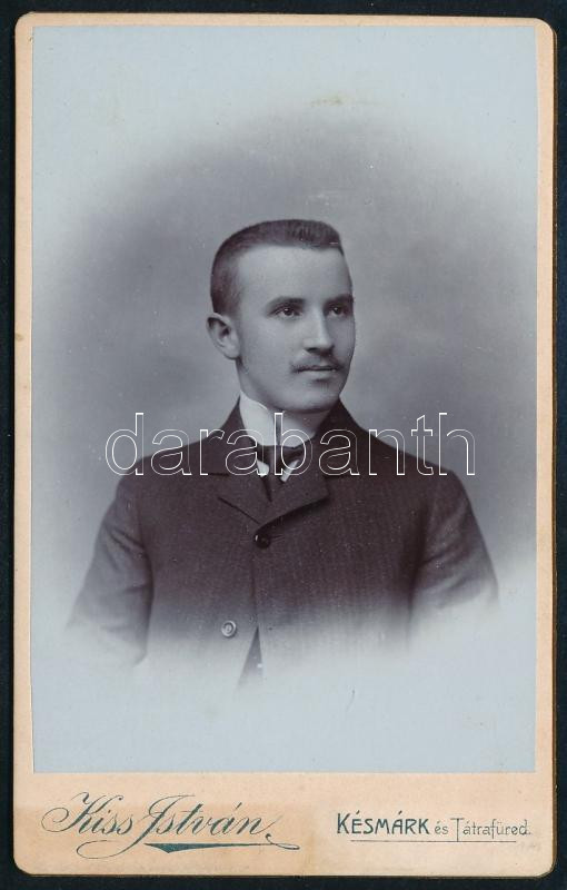 1904 Fiatal férfi portréja, vizitkártya Kiss István (Késmárk és Tátraf... https://www.darabanth.com/hu/513-Filatelia-kepeslap-numizmatika-mutargy-konyv-papirregiseg-ekszer-aukcio/513.0/Fotomuveszet/Foto~84/1904-Fiatal-ferfi-portreja-vizitkartya-Kiss-Istvan-Kesmark-es-Tatrafured-mutermebol-10-5x6-5~II3472731