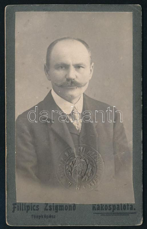 Leírás: 1912 Franz József géplakatos, igazolványként használt keményhátú fotó Filipics Zsigmond rákospalotai műterméből, 10,5×6,5 cm