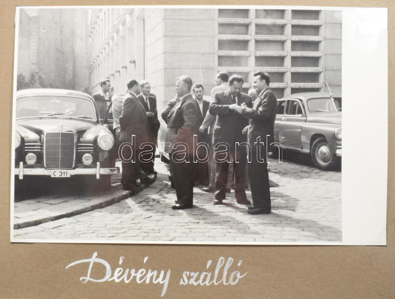 ca 1960 Bratislava, Piestany, Tatra photo album with 34 large interesting private photos, with a photo corner, 22x14 cm. The album cover is carved wood, depicting the Bratislava Castle.
