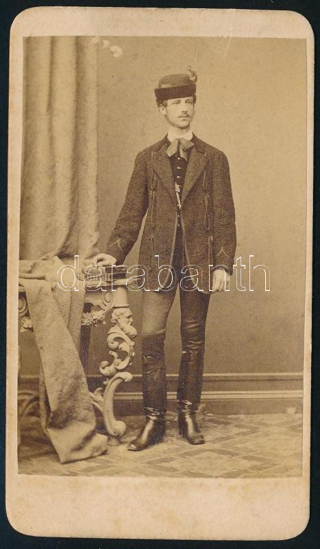 Leírás: cca 1865 Fiatalember portréja, keményhátú fotó Licskó János pesti műterméből, 10,5×6 cm