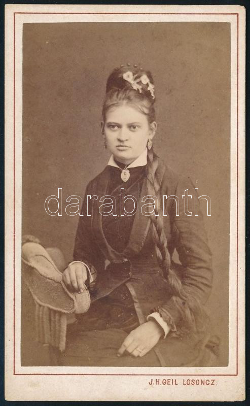 cca 1880 Női portré, keményhátú fotó Geil József losonci műterméből, h... https://www.darabanth.com/hu/513-Filatelia-kepeslap-numizmatika-mutargy-konyv-papirregiseg-ekszer-aukcio/513.0/Fotomuveszet/Foto~84/cca-1880-Noi-portre-kemenyhatu-foto-Geil-Jozsef-losonci-mutermebol-hatoldalon-a-mutere~II3466753