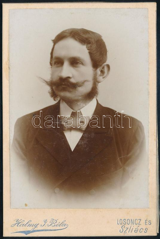 cca 1883 Férfiportré, keményhátú fotó Halmy Béla (Losonc, Szliács) műt... https://www.darabanth.com/hu/513-Filatelia-kepeslap-numizmatika-mutargy-konyv-papirregiseg-ekszer-aukcio/513.0/Fotomuveszet/Foto~84/cca-1883-Ferfiportre-kemenyhatu-foto-Halmy-Bela-Losonc-Szliacs-mutermebol-hartyapap~II3472090