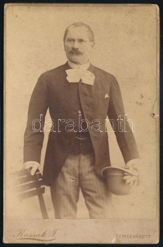 cca 1890 Temesvári előkelő férfi portréja, keményhátú fotó Kossak Józs... https://www.darabanth.com/hu/513-Filatelia-kepeslap-numizmatika-mutargy-konyv-papirregiseg-ekszer-aukcio/513.0/Fotomuveszet/Foto~84/cca-1890-Temesvari-elokelo-ferfi-portreja-kemenyhatu-foto-Kossak-Jozsef-mutermebol-hatoldalon~II3472130