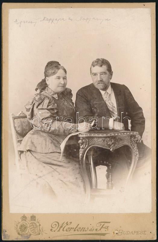 cca 1900 "Egressy nagypapa és nagymama", keményhátú fotó Mer... https://www.darabanth.com/hu/513-Filatelia-kepeslap-numizmatika-mutargy-konyv-papirregiseg-ekszer-aukcio/513.0/Fotomuveszet/Foto~84/cca-1900-Egressy-nagypapa-es-nagymama-kemenyhatu-foto-Mertens-es-Tarsa-budapesti-muterme~II3467171