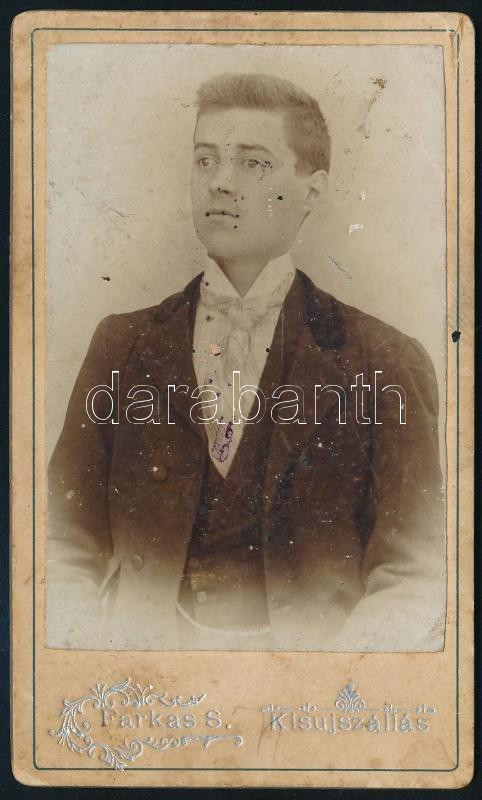 Leírás: cca 1900 Férfiportré, keményhátú fotó Farkas Sándor kisújszállási műterméből, kopásnyomokkal, 10,5×6,5 m