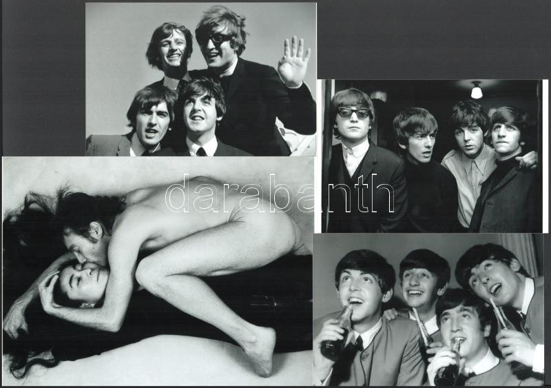 cca 1970 John Lennon és Yoko Ono, 1 db modern nagyítás, jelzés nélkül, 15x21 cm + hozzáadva a Beatles együttesről még három felvétel, ezek is modern nagyításban, jelzés nélkül, 10x15 cm