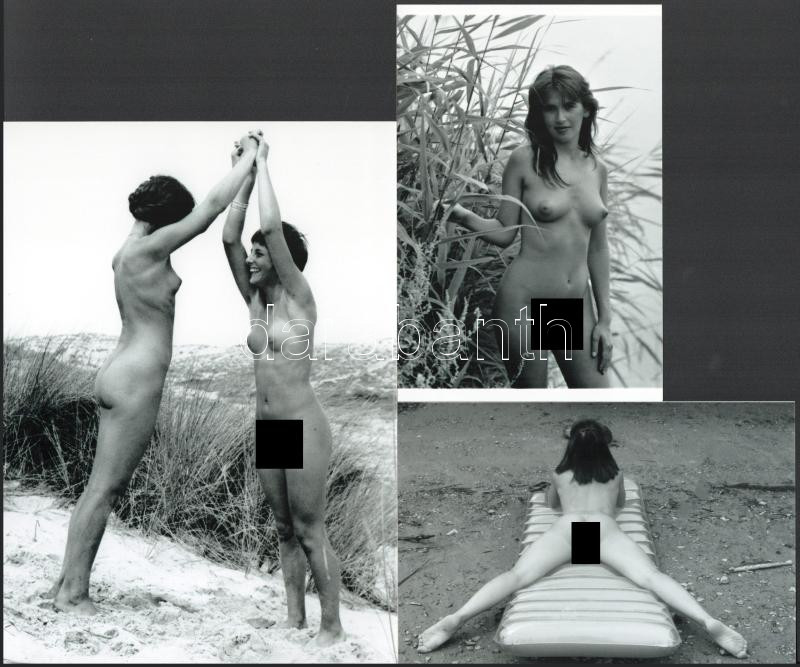 Leírás: cca 1975 "Természetimádók a nudista parton", szolidan erotikus felvételek, 3 db modern nagyítás, jelzés nélkül, 21x15 cm és 10x15 cm