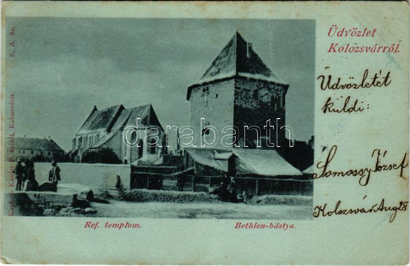1899 Kolozsvár, Cluj; Református templom, Bethlen-bástya télen. Kováts... https://www.darabanth.com/hu/513-Filatelia-kepeslap-numizmatika-mutargy-konyv-papirregiseg-ekszer-aukcio/513.0/Kepeslapok/Erdely~512/1899-Kolozsvar-Cluj-Reformatus-templom-Bethlen-bastya-telen-Kovats-P-fiai-kiadasa-Calvi~II3470536