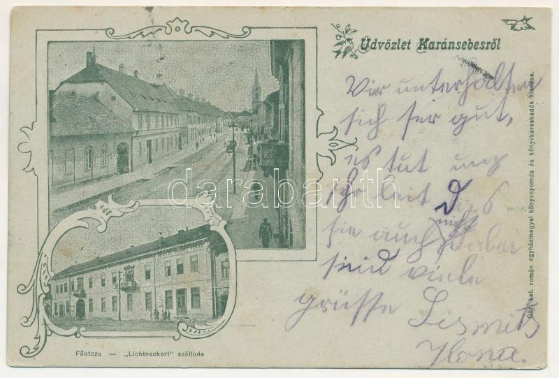 1900 Karánsebes, Caransebes; Fő utca, Lichtneckert szálloda / main str... https://www.darabanth.com/hu/513-Filatelia-kepeslap-numizmatika-mutargy-konyv-papirregiseg-ekszer-aukcio/513.0/Kepeslapok/Erdely~512/1900-Karansebes-Caransebes-Fo-utca-Lichtneckert-szalloda-main-street-hotel-Art-Nouveau-fl~II3470688