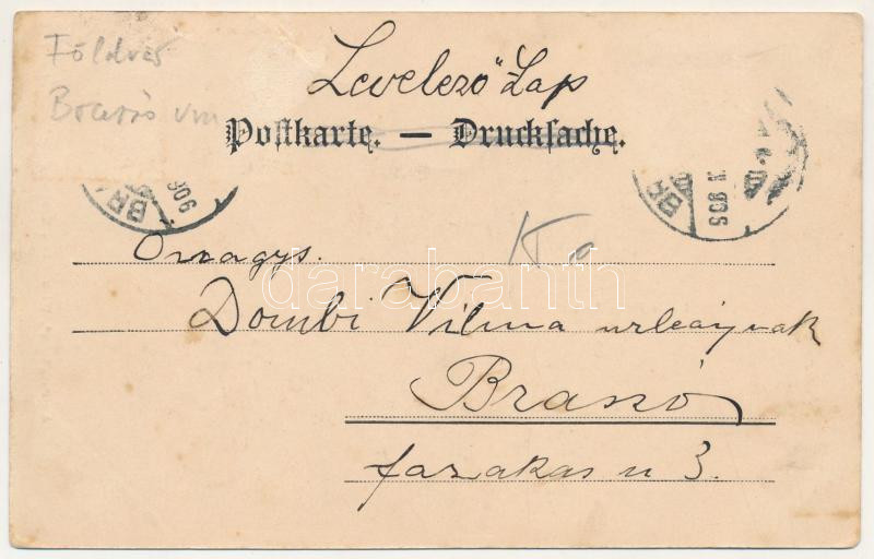 1906 Barcaföldvár, Földvár, Marienburg, Feldioara; Barcaföldvár vára, Evangélikus templom, látkép. Atelier "Anna" Wien / Cetatea Feldioarei / Ev. Kirche, Ruine Marienburg, Totalansicht / castle ruins, Lutheran church, general view. Art Nouveau, floral (Rb)