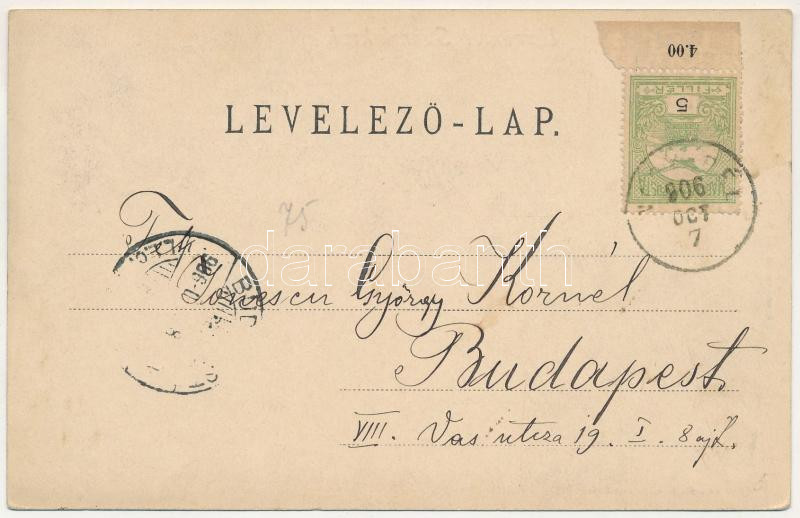 1906 Szemlak, Semlac (Arad); Román ortodox templom, Evangélikus templom és paplak, Községháza, gyógyszertár, Spitzer Mór üzlete és saját kiadása. Belgram L. felvétele / church, pahrmacy, shop