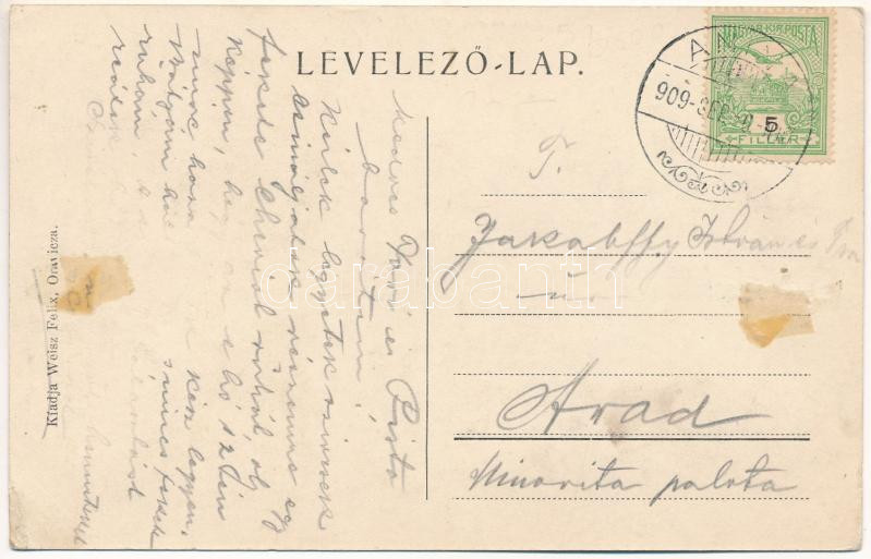 Leírás: 1909 Oravicabánya, Oravica, Oravicza, Oravita; Bányavölgy. Weisz Félix kiadása / mine valley (ragasztónyom / glue marks)
