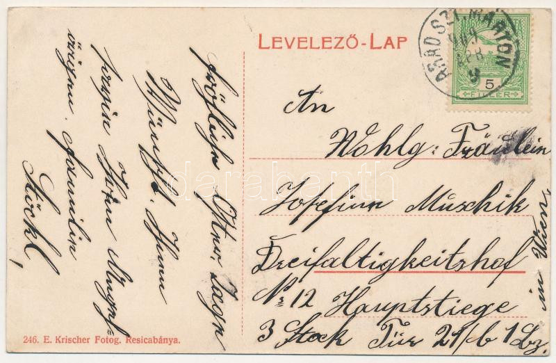 Leírás: 1909 Szentmárton, Aradszentmárton, Sanmartin; Római katolikus templom. E. Krischer / Catholic church (fl)