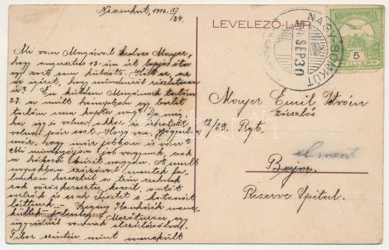 Leírás: 1916 Nagysomkút, Somcuta Mare; Kővárvidéki Takarékpénztár. Silbermann Lajos kiadása / savings bank of Tara Chioarului (EB)