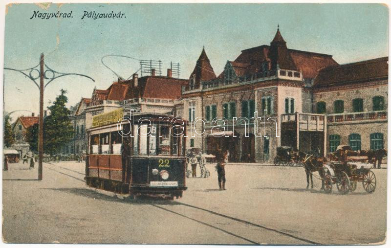 Leírás: 1916 Nagyvárad, Oradea; Pályaudvar, vasútállomás, villamos / railway station, tram (b)