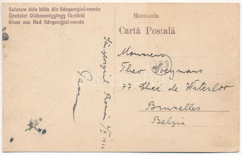 1922 Oláhszentgyörgy, Sangeorgiul Roman, Sangeorz-Bai; Gyógyforrás / Isvor de apa minerala / Heilquelle / spa, mineral water spring (ázott sarok / wet corner)