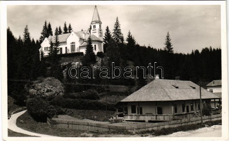Leírás: Borszék, Borsec; Római katolikus templom, plébánia lak / Roman Catholic church, parish