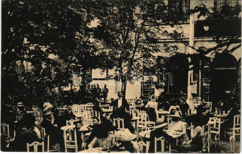 Leírás: Nagyszeben, Hermannstadt, Sibiu; Erlenpark cukrászda kerthelyisége. Czelnai felvétele / Conditorei / confectionery garden