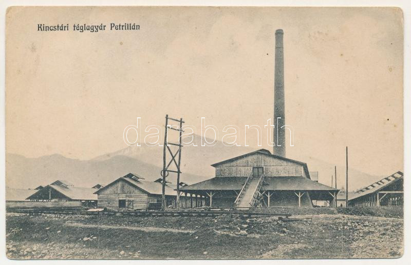 Leírás: Petrilla, Petrila; Kincstári téglagyár, iparvasút. Zavetz József kiadása. Atilla fényképvállalat / brick factory, brickyard, industrial railway (EB)