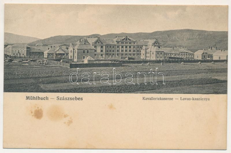Szászsebes, Mühlbach, Sebesul Sasesc, Sebes; Lovas kaszárnya, laktanya... https://www.darabanth.com/hu/513-Filatelia-kepeslap-numizmatika-mutargy-konyv-papirregiseg-ekszer-aukcio/513.0/Kepeslapok/Erdely~512/Szaszsebes-Muhlbach-Sebesul-Sasesc-Sebes-Lovas-kaszarnya-laktanya-Anna-Gross-kiadasa-Kav~II3470408