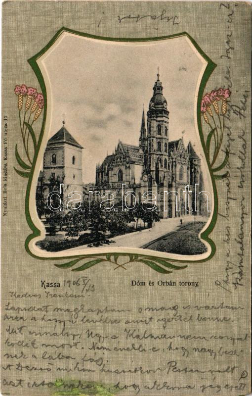 1906 Kassa, Kosice; Dóm és Orbán torony. Nyulászi Béla kiadása, szeces... https://www.darabanth.com/hu/513-Filatelia-kepeslap-numizmatika-mutargy-konyv-papirregiseg-ekszer-aukcio/513.0/Kepeslapok/Felvidek~513/1906-Kassa-Kosice-Dom-es-Orban-torony-Nyulaszi-Bela-kiadasa-szecesszios-viragos-litho-ke~II3465919