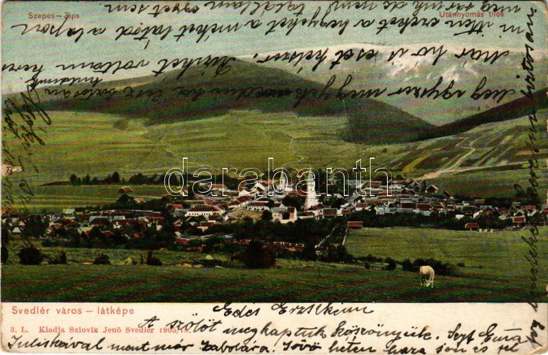 1906 Svedlér, Schwedler, Svedlár (Szepes, Zips); látkép, Evangélikus templom. Szlovik Jenő kiadása / general view with Lutheran church (szakadás / tear)