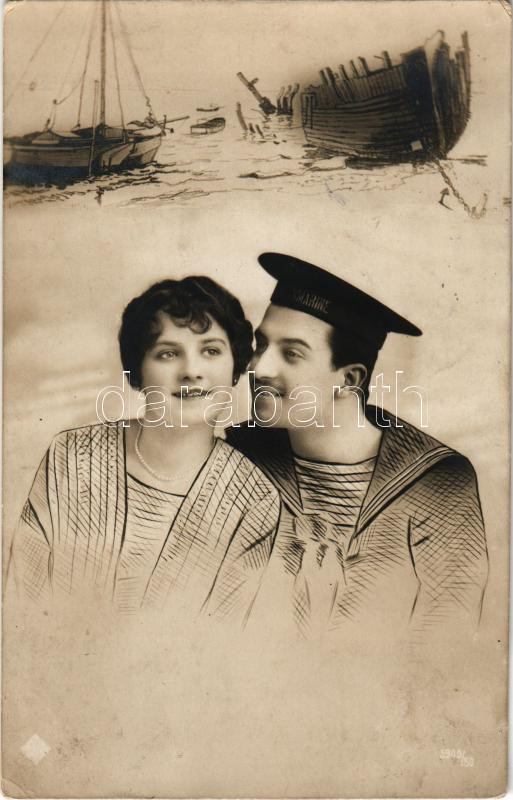 1917 Osztrák-magyar haditengerészet matróza és egy hölgy, montázs, az SM Tb 66F torpedónaszádról küldve / K.u.k. Kriegsmarine Matrose / WWI Austro-Hungarian Navy mariner with a lady, montage. photo (EK)