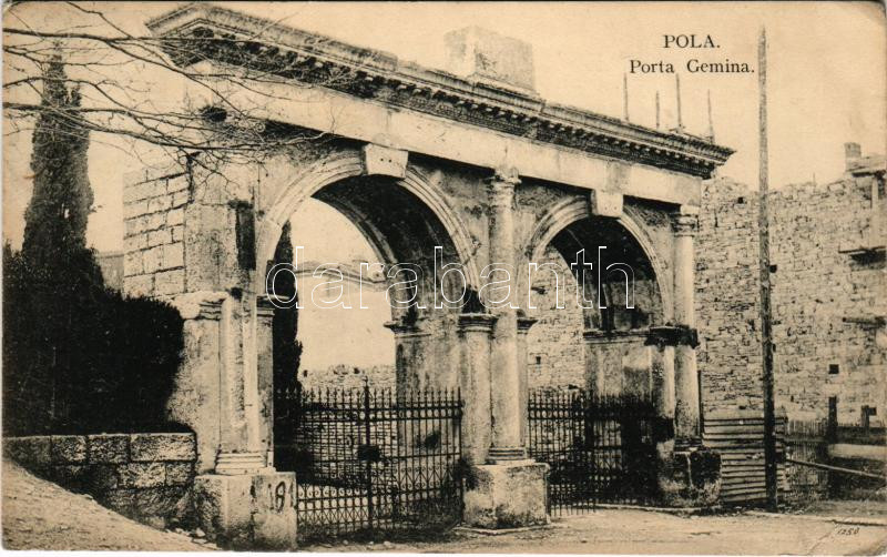 Leírás: 1909 Pola, Porta Gemina. G. Fano / gate (EB)
