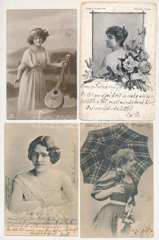 Leírás: 10 db RÉGI művészlap: hölgyek, közte fotó / 10 pre-1945 art postcards: ladies, with photo