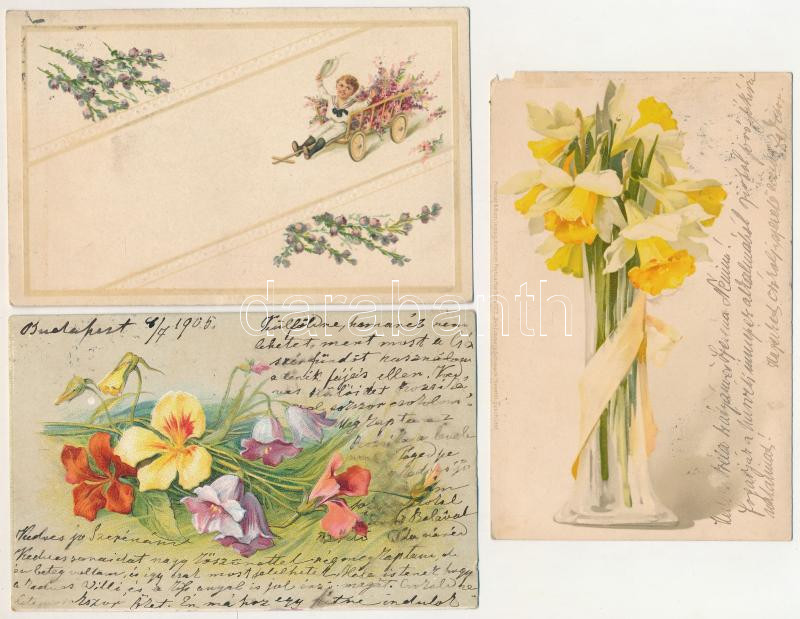 17 db RÉGI virágos üdvözlőlap, közte lithok / 17 pre-1945 greeting car... https://www.darabanth.com/hu/513-Filatelia-kepeslap-numizmatika-mutargy-konyv-papirregiseg-ekszer-aukcio/513.0/Kepeslapok/Kepeslap-Tetelek~612/17-db-REGI-viragos-udvozlolap-kozte-lithok-17-pre-1945-greeting-cards-with-flowers-including~II3473223