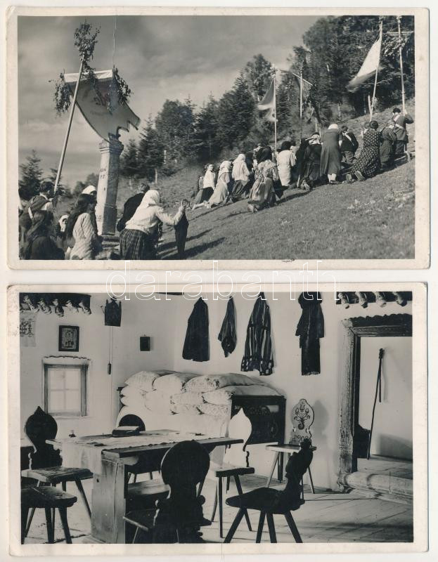 Leírás: 2 db RÉGI képeslap: székely szoba, Csíksomlyó, búcsú részlet / 2 pre-1945 postcards: Szekler room interior, pilgrimage in Sumuleu Ciuc