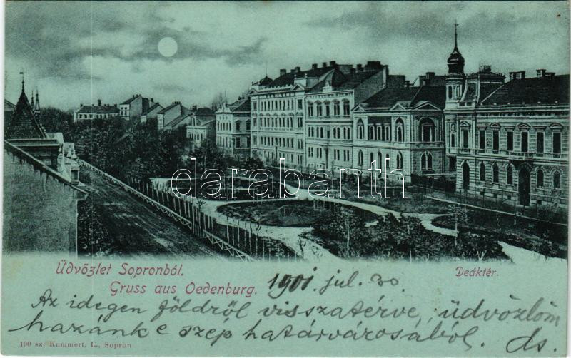 Leírás: 1901 Sopron, Deák tér este holdfényben. Kummert L. kiadása (EK)