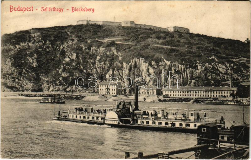 Leírás: Budapest XI. Gellérthegy, Citadella, Rudas fürdő, "HATTYÚ" gőzös, gőzhajó (fl)