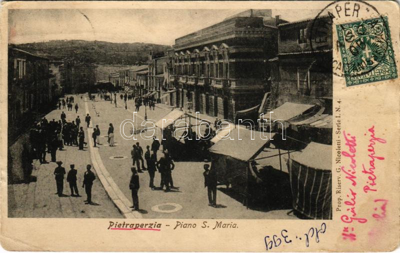 Leírás: 1905 Pietraperzia, Piano S. Maria / square, market (worn corners)