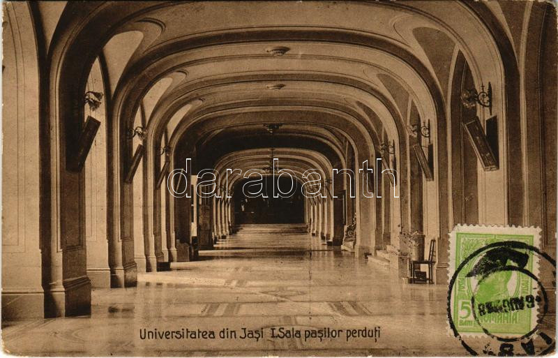 Iasi, Jasi, Jassy, Jászvásár; Universitatea din Iasi I. Sala pasilor p... https://www.darabanth.com/hu/513-Filatelia-kepeslap-numizmatika-mutargy-konyv-papirregiseg-ekszer-aukcio/513.0/Kepeslapok/Romania~557/Iasi-Jasi-Jassy-Jaszvasar-Universitatea-din-Iasi-I-Sala-pasilor-perduti-university-interi~II3470434