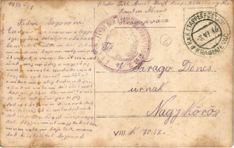 Leírás: 1916 Kragujevac, Kragouyevats; Stara Crkva / old church. photo + "K.u.k. Etappenpostamt Kragujevac" (EB)