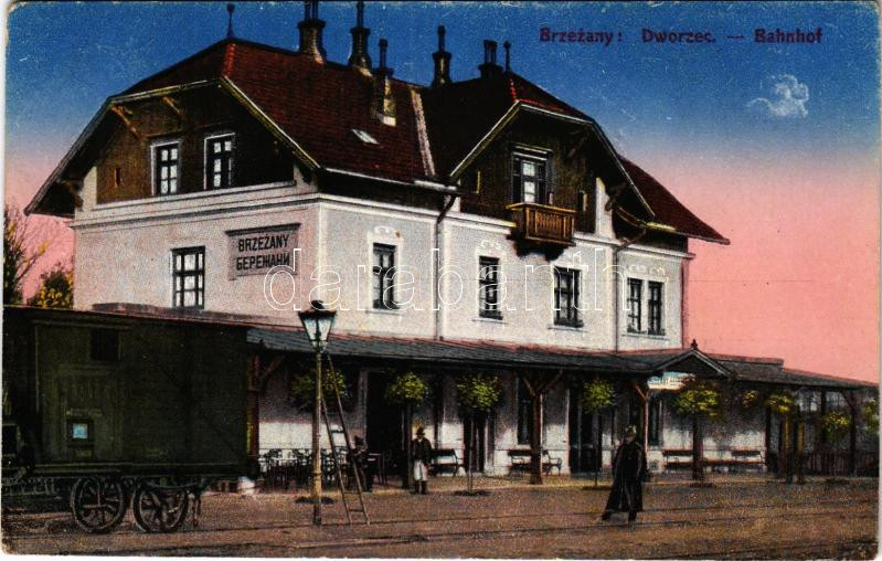 Leírás: 1918 Berezhany, Brzezany, Berezsani; Dworzec / Bahnhof / railway station (EK)