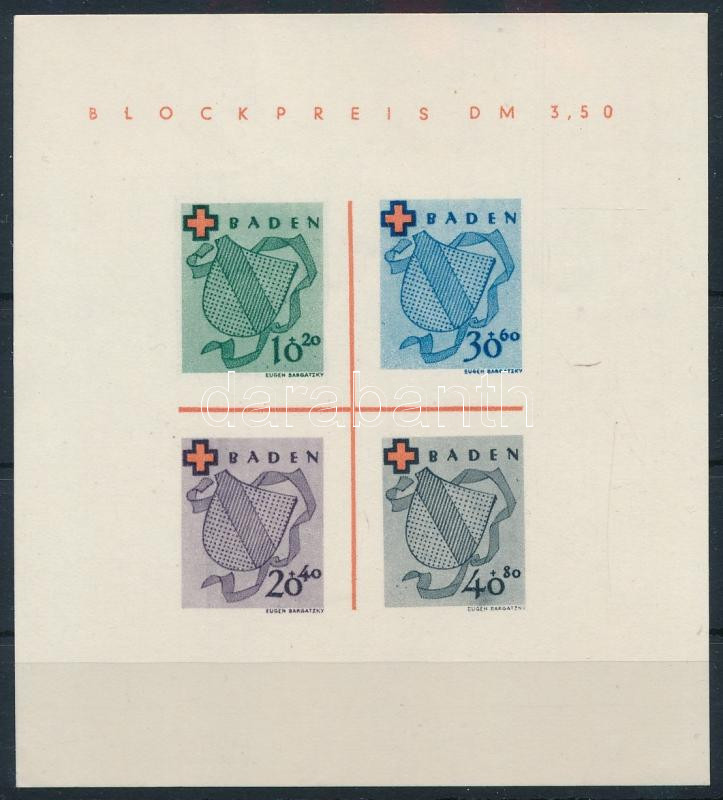 Leírás: Németország francia-zóna Baden 1949 Mi block 2, gyárilag gumi nélküli (Mi EUR 140,-)