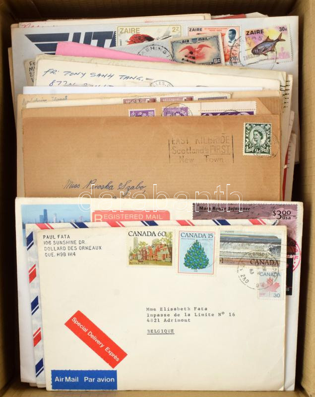 Leírás: 168 db vegyes külföldi küldemény, benne kis és nagyalakú borítékok, néhány magyarral