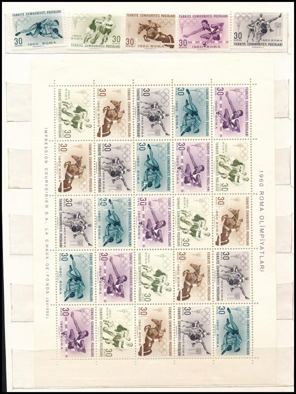 Leírás: 1924-1960 Kis olimpia motívum tétel, benne 5 sor + egy teljes ív, A/4-es berakólap mindkét oldalán