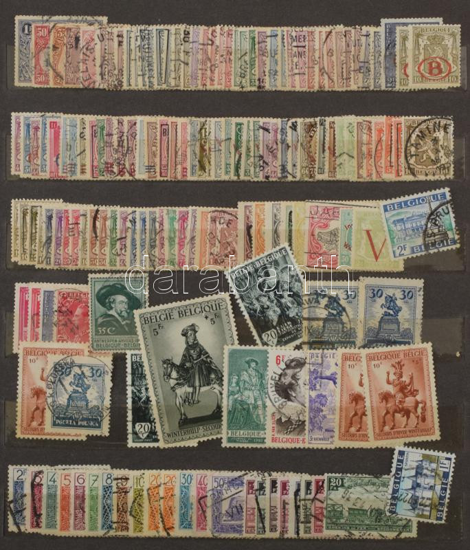 Leírás: Belgium több száz darab bélyeg 10 lapos berakóban (betapadt/beragadt bélyegek / a lot of stamps sticked in)