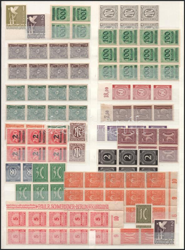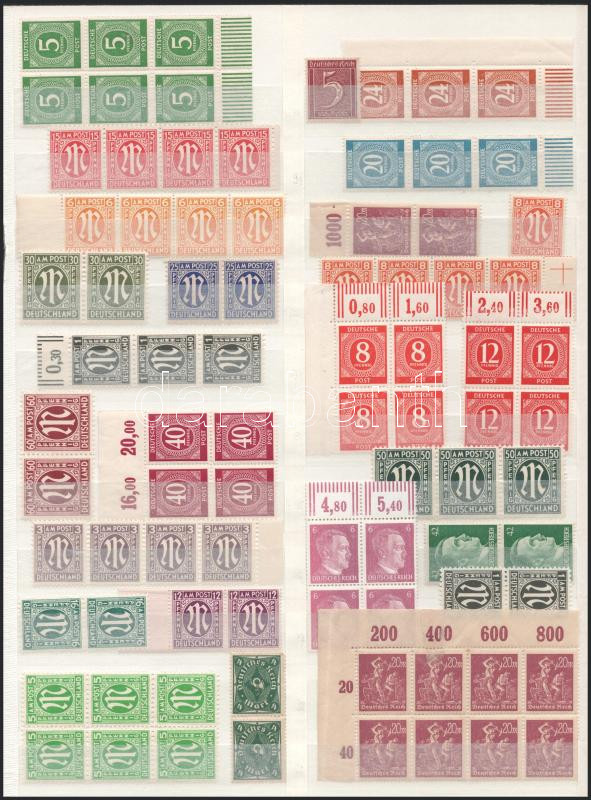 Leírás: Deutsches Reich + zónák 194 db bélyeg (46 klf) nagyrészt összefüggésekben, köztük ívszéliek is