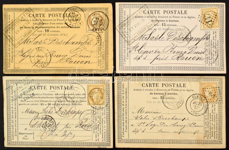 Leírás: Franciaország 1874-1876 130 db bélyegzésre átnézetlen levelezőlap jó minőségben