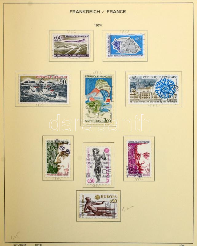 Leírás: Franciaország gyűjtemény az 1944-1984 közötti időszakból, benne 1.590 db bélyeg + 1 db blokk, nagyalakú előnyomott albumban