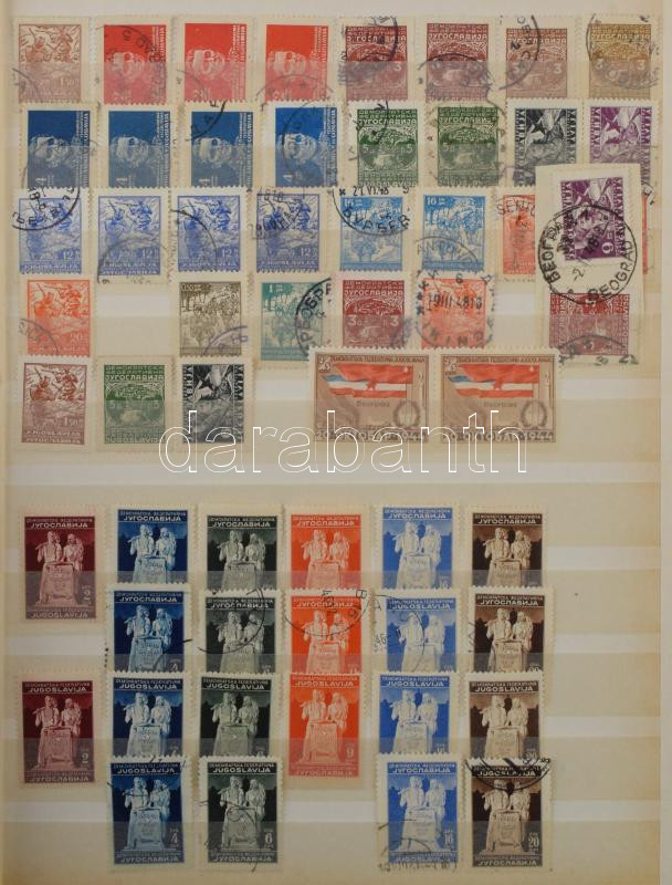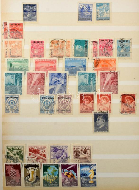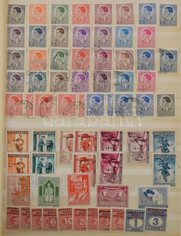Leírás: Jugoszlávia készlet, benne több példányos kiadások, 4 db blokk, S.H.S felülnyomás, portók, 16 lapos A4-es berakóban