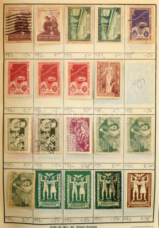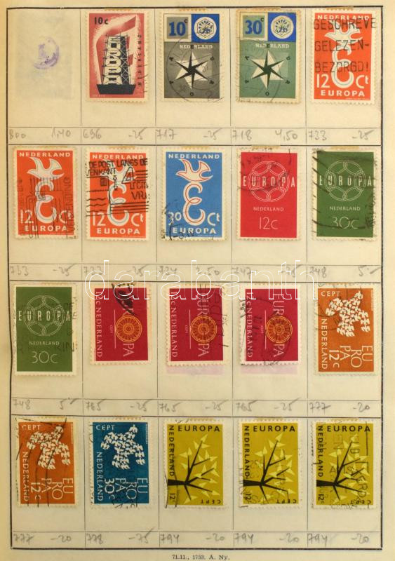 Leírás: Kb 4.000 db bélyeg 7 db régi cserefüzetben, benne angol gyarmatok, francia gyarmatok, Németország, Europa CEPT, Argentína stb.